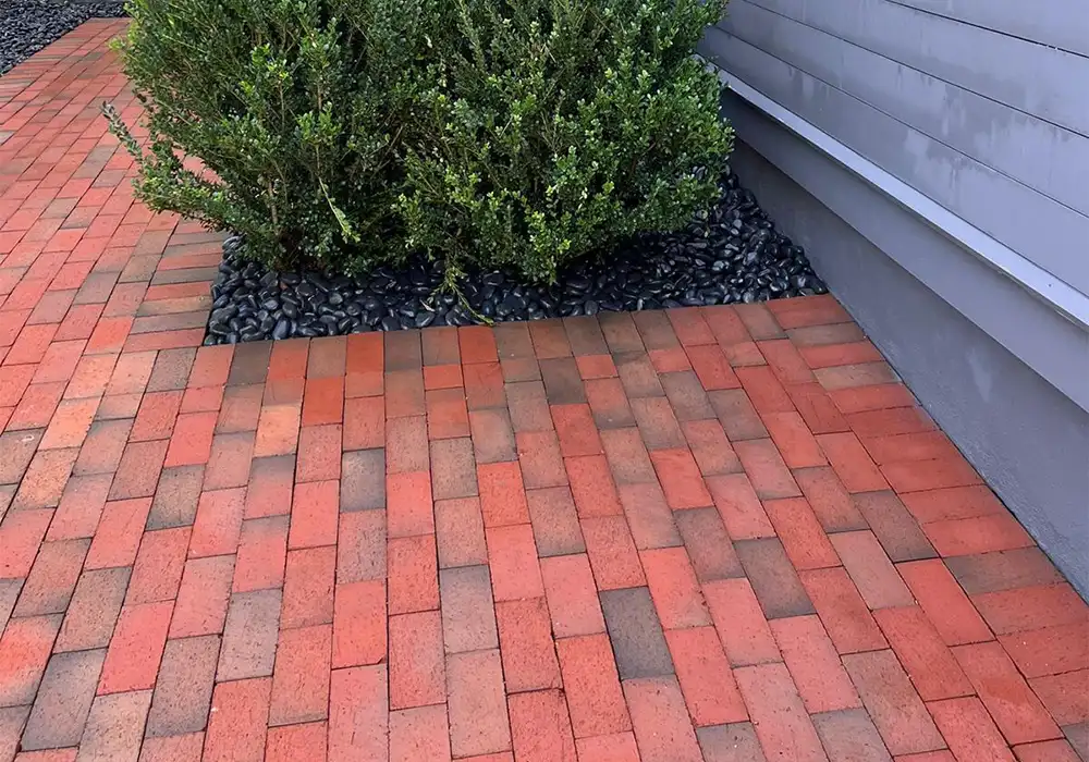 Concrete, brick, natural stone, and interlocking pavers are the most common materials.