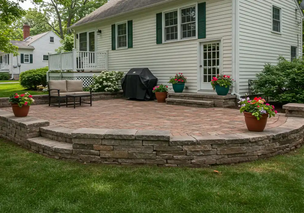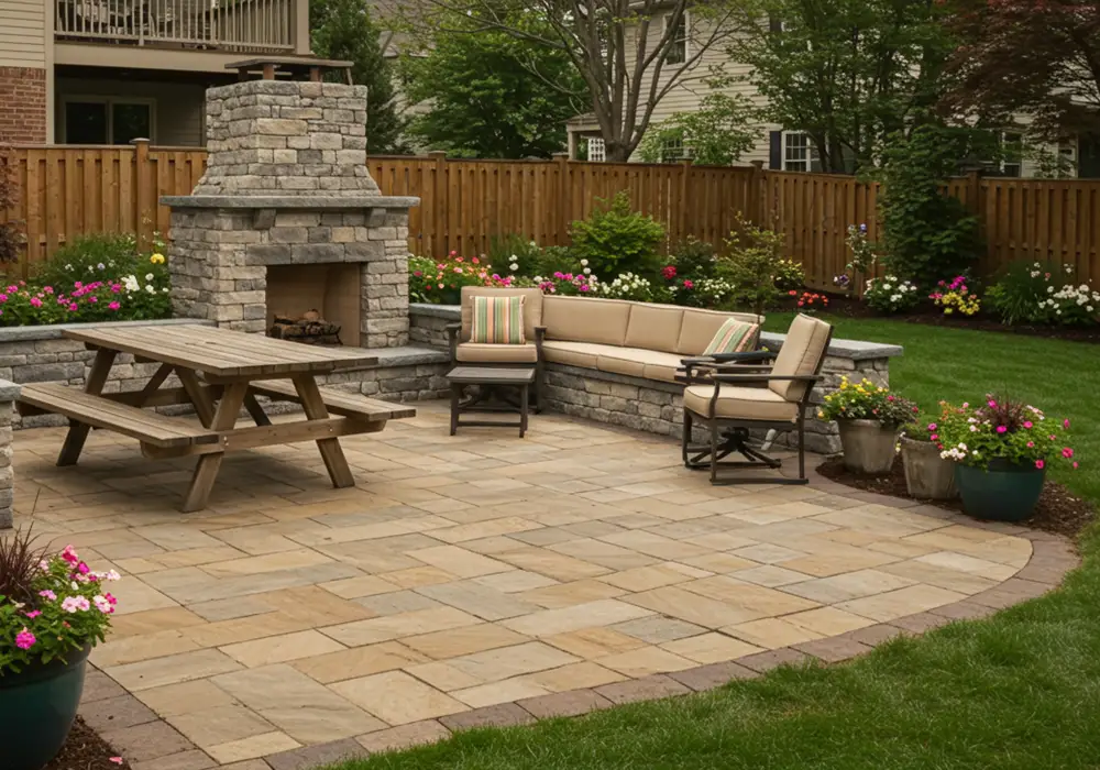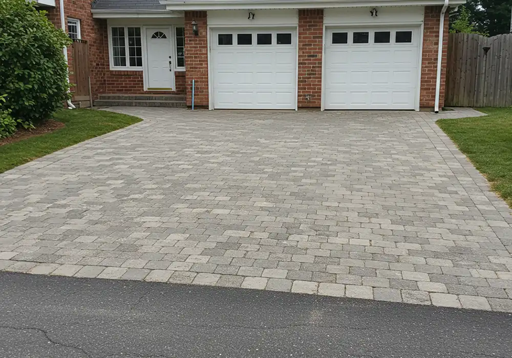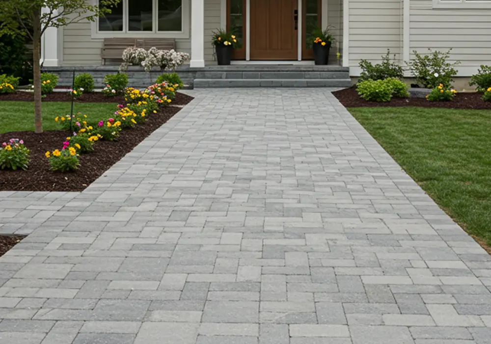 Concrete, brick, natural stone, and interlocking pavers are the most common materials.